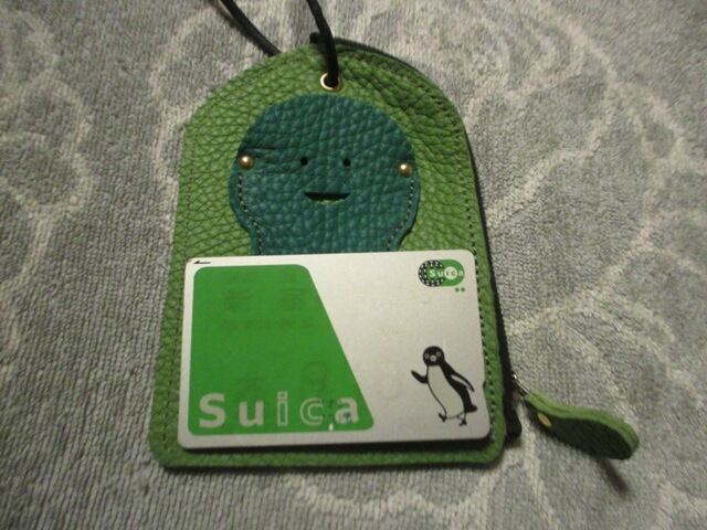 表はフランスの最高級革の1つトリヨンの鮮やかなパルメグリーンのベースに濃いグリーンでポケットを付けて、お堀と古墳をイメージしました。