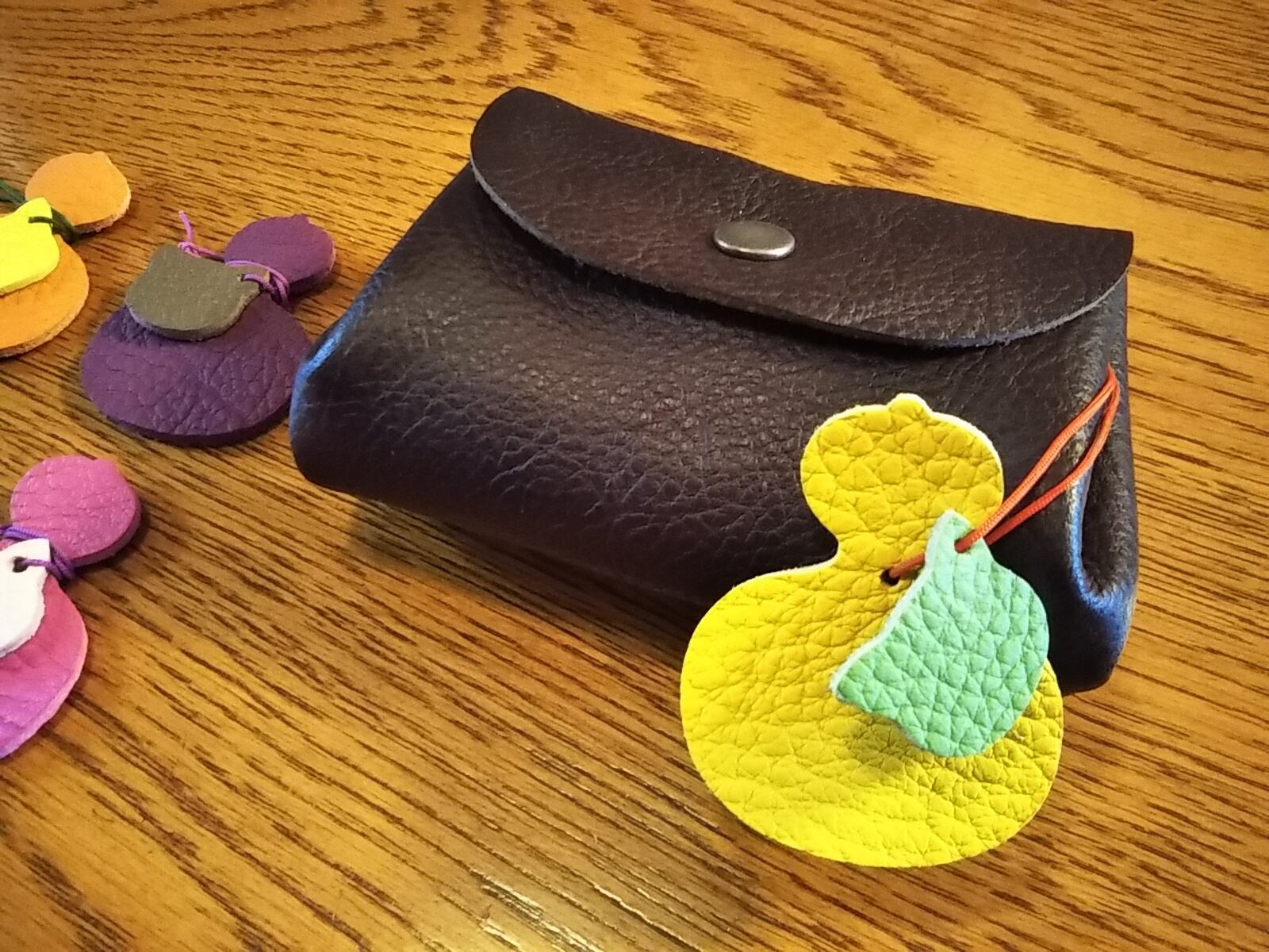 プニプニの革トリヨンを使って作ったチャームです。違う色のネコとセットです。
